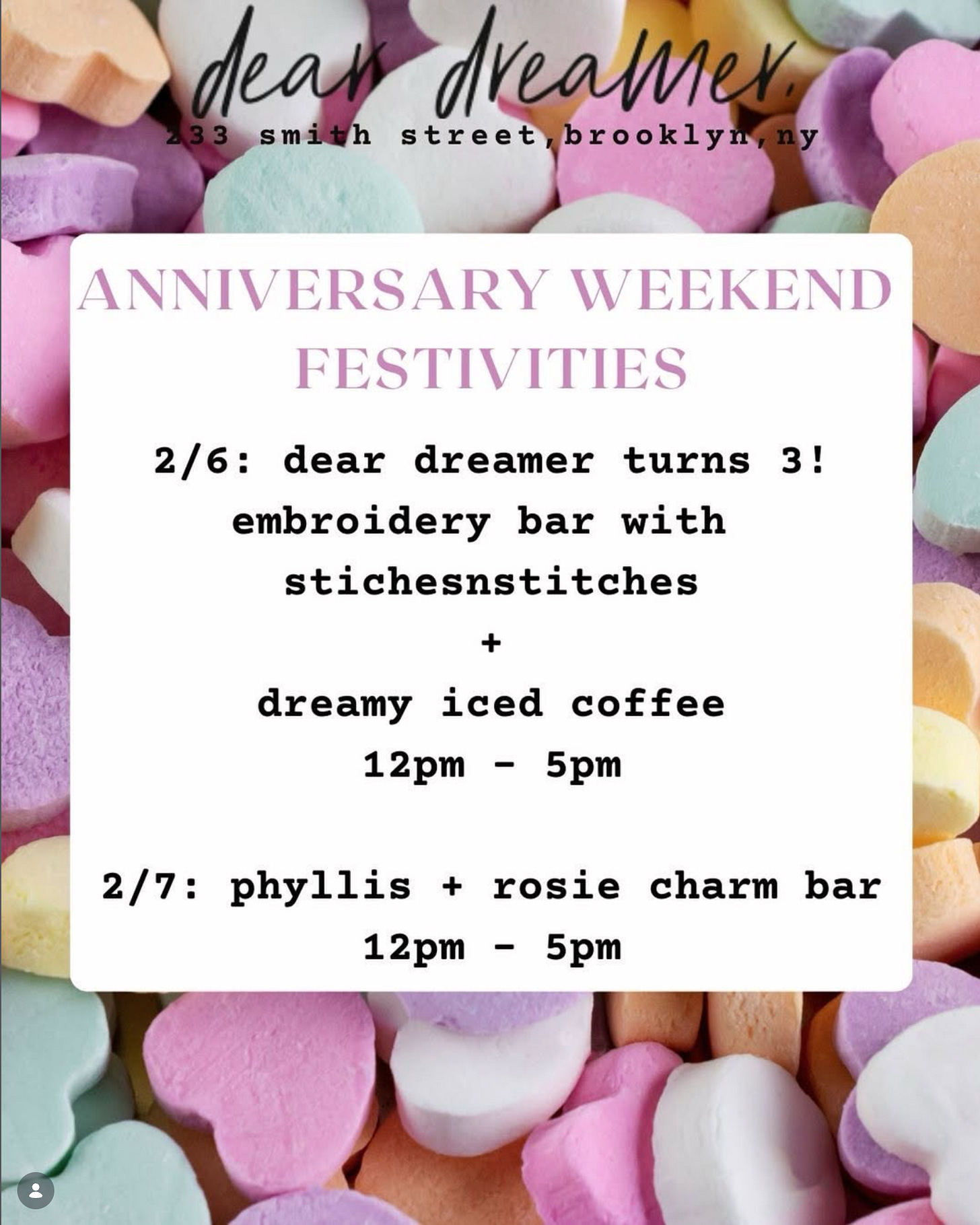 Dear Dreamer turns 3! They’re celebrating with weekend festivities including an embroidery bar, charm bar and lots of iced coffee!