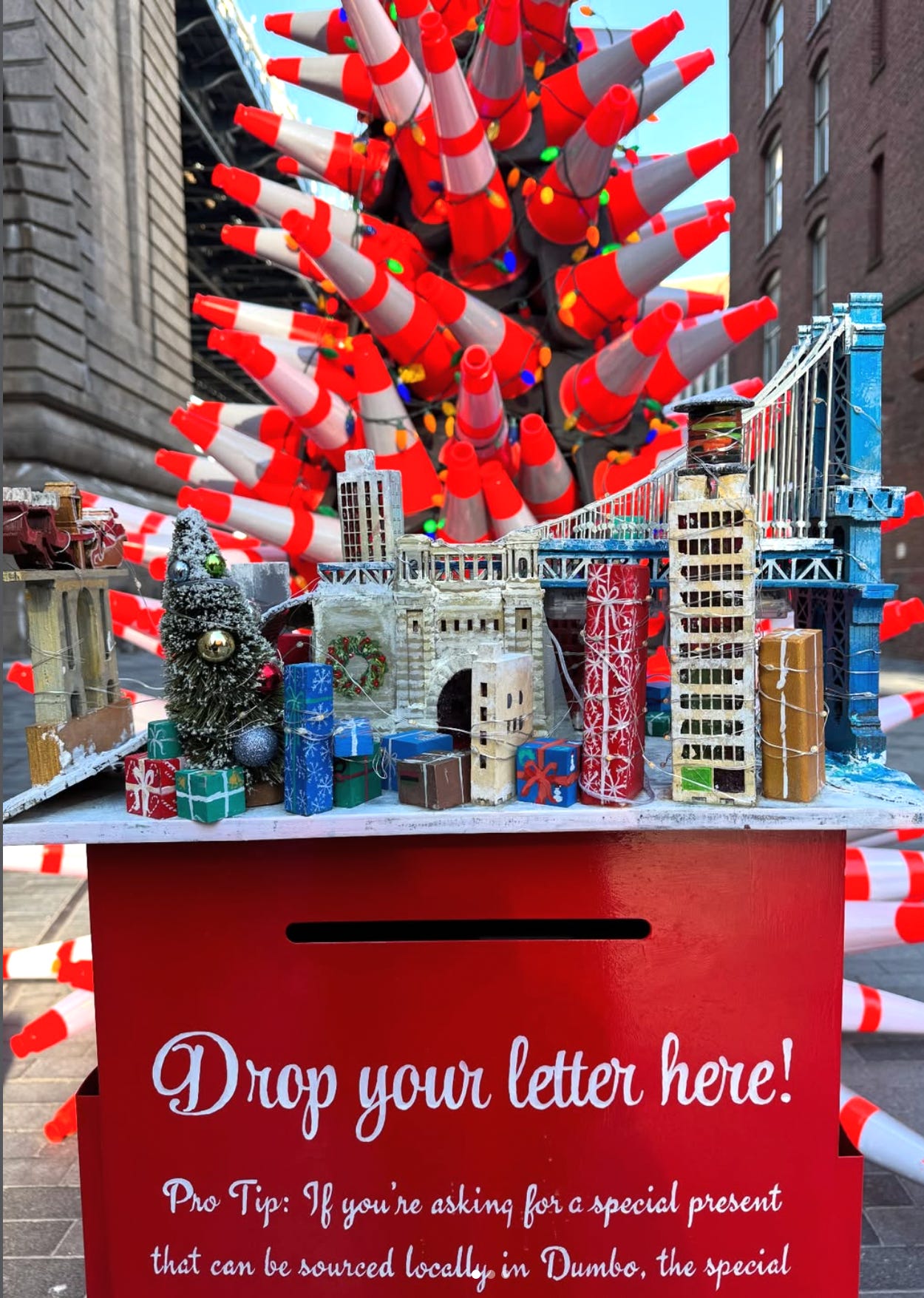 Have a little one with a message for Santa? Drop their letter at the North Pole mailbox by the Construction Cone Tree in the DUMBO Archway Plaza. And, if their wish list can be found locally, Dumbo’s elves may even deliver an early surprise. Don’t forget to include an email address so the elves can work their holiday magic!