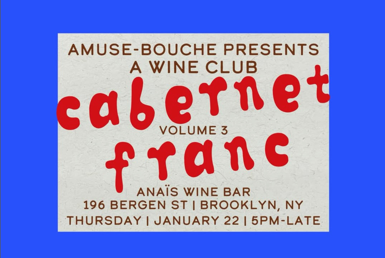 Amuse-Bouche Wine Club @ Anaïs Wine Bar (5:00pm-LATE): Anaïs is hosting Wine Club Vol. 3, spotlighting Cabernet Franc through different regions, vintages, and winemaking styles. The tasting will feature pours from Stagiaire Wine and La Grange Aux Belles, along with non-alcoholic options and dessert.