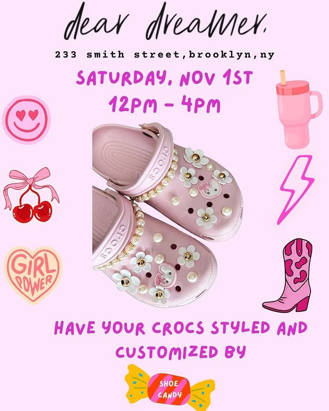 Croc Charm Bar @ Dear Dreamer (12:00pm-4:00pm): Bring your Crocs to Dear Dreamer and give them a glow-up! Kids’ and adults’ sizes welcome (a quick pre-cleaning is appreciated but not required).