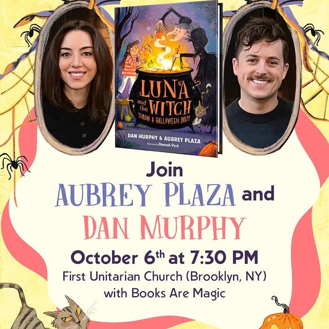 Luna and the Witch Book Event with Audrey Plaza and Dan Murphy @ First Unitarian Church with Books Are Magic (7:30pm): Get in the spooky spirit and join for a special Luna and the Witch event with Aubrey Plaza and Dan Murphy, featuring their charming new Halloween tale about a wannabe bruja and a kooky witch teaming up to throw the season’s best party. Tickets HERE.