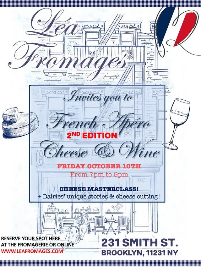 French Apéro 2nd Edition Cheese & Wine @ Lea Fromages (Friday October 10 7:00pm-9:00pm): Experience a relaxed tasting of cheeses and wines, and share a warm gathering as you hear the stories behind the cheese! Tickets HERE.